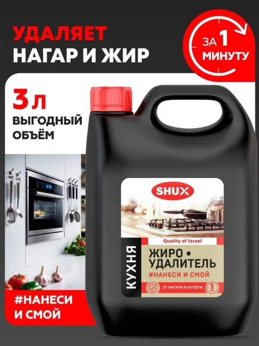Бутылка целая пришла, без подтеков, крышка надежно закручивается. Раствор без осадка, однородный, но лучше на кожу, чтобы не попадало средство - сушит сильно. А так духовка, казан, гриль и прочее - от жира и нагара хорошо отмывает средство.